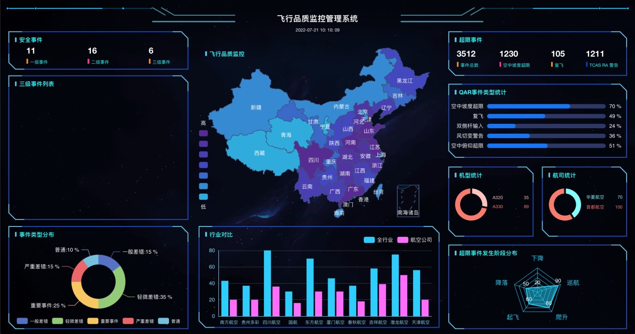 基于QAR数据提取、变换、分析与飞行品质风险相关的飞行参数,搭建飞行品质风险量化评估模型,实现对着陆风险类别、风险因子、地理分布特征等方面的可视化展示;聚合多个航段着陆阶段的飞行参数曲线进行,展示群体着陆模式,发现着陆品质风险形成的典型特征。协助航空公司对机队飞行品质的管理与提升。