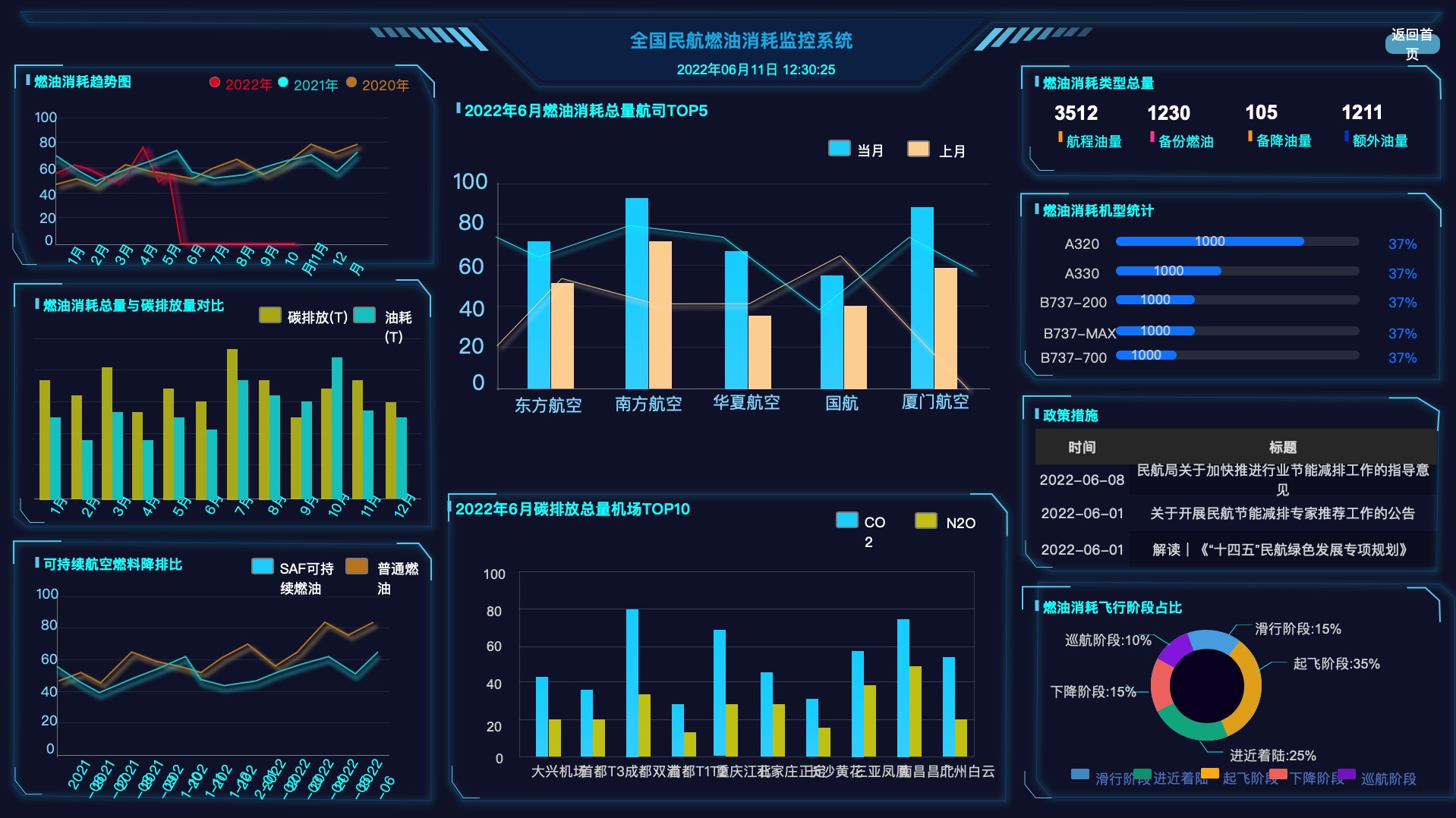 通过智慧民航大数据资源整合平台对飞行数据、气象监测数据为基础。对航班在从滑行、起飞、爬升、巡航、降落全阶段的燃油消耗进,结合影响燃油消耗的全部因素进行数据分析。对同航线同机型进行进行模型训练,与往期同类历史数据进行数据比对。提供燃油消耗分析报告及预测评估数据模型。